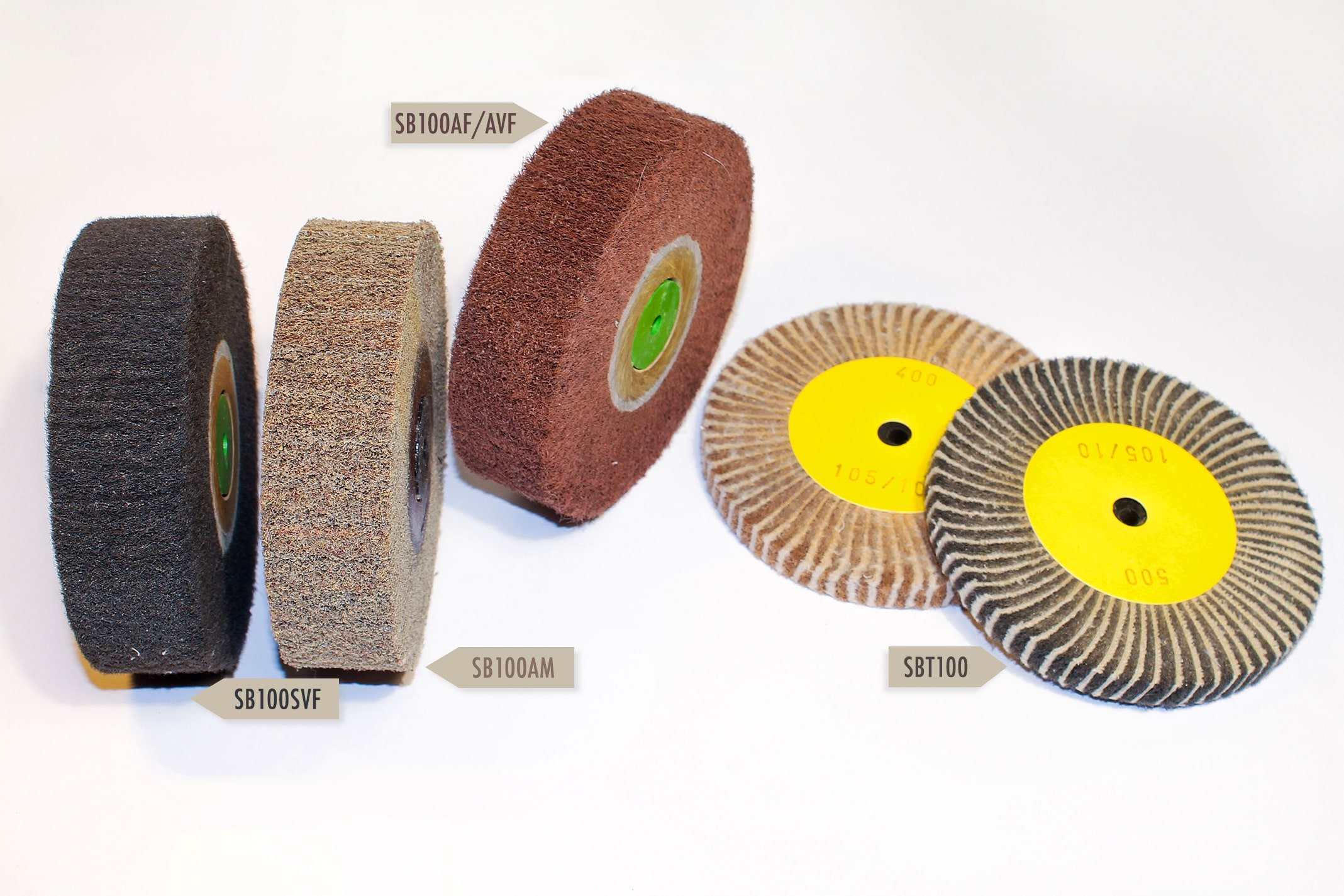 | SBT100 | Scotch Brite and Abrasive Cloth | Ø 100 mm – ↕10, 15, 20, 30 mm | From 60 to 600 |